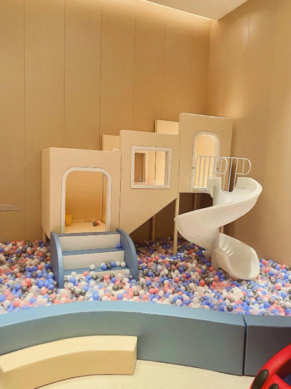 Here, there are colorful climbing walls that challenge little adventurers, a sea of colorful balls where they can dive and laugh, and various interactive play structures that spark creativity. Every corner is filled with bright hues and fun elements, making it a perfect place for children to run, jump, and create unforgettable childhood memories. It’s not just a playground; it’s a world of joy and discovery!