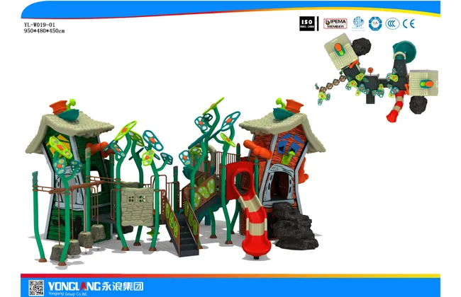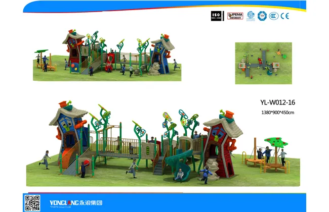The YL26337-09, a product of the Cocoa House Series, features a whimsical and welcoming design. One side of the structure resembles a charming, cartoon-style house with a playful posture—standing with "hands on hips"—as if inviting children and parents to explore. This set is adorned with leaf-shaped and lotus-inspired decorations, harmonizing with the natural color palette of soft gray, muted green, and light beige.
