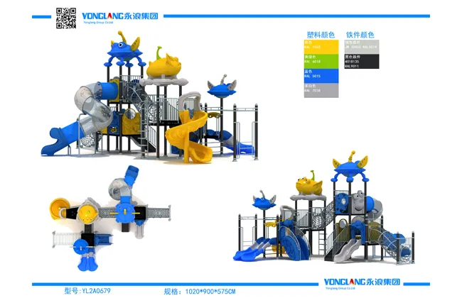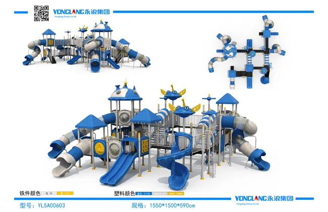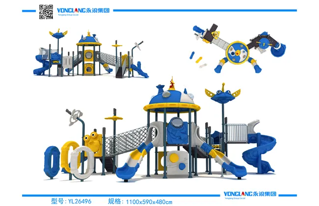 Using a new granulation process with imported high-quality LLDPE particles, the plastic parts are colored uniformly with masterbatch after being reground into powder. Yonglang applies roto-molding process which makes more stable and colorful parts. The result is vivid, fade-resistant plastic particles. The galvanized steel pipes and iron components for the columns are sturdy, corrosion-resistant, and form a stable structure.