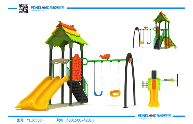 The YL02807-03 model boasts a sunny orange, fresh green, and warm beige palette that mimics the rich hues of a forest. The layered tones evoke the charm of lush foliage and rustic rooftops, creating a visual narrative of abundance and harvest. This playful yet natural design not only attracts children’s attention but also stimulates their imagination and encourages active play. The colors are carefully selected to blend seamlessly into outdoor environments while standing out as a joyful centerpiece in parks, schools, or residential areas.
