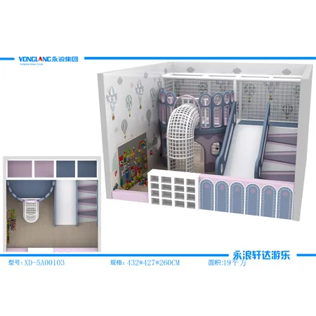 The product adopts a soft macaron color scheme (light pink, light blue, and white), presenting a fresh and cute overall style that caters to the aesthetic preferences of young children. The design incorporates playful elements such as castles and tunnels, with the walls decorated with hot air balloon-themed stickers to create a dreamy play atmosphere. It is suitable for indoor spaces such as family children's rooms, early education centers, and small baby stores, taking up a small area and being easy to install. The soft structure and protective net design effectively reduce the risk of children bumping into it, making it suitable for children aged 2 to 8.